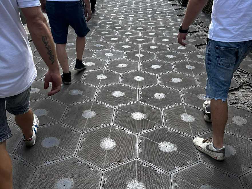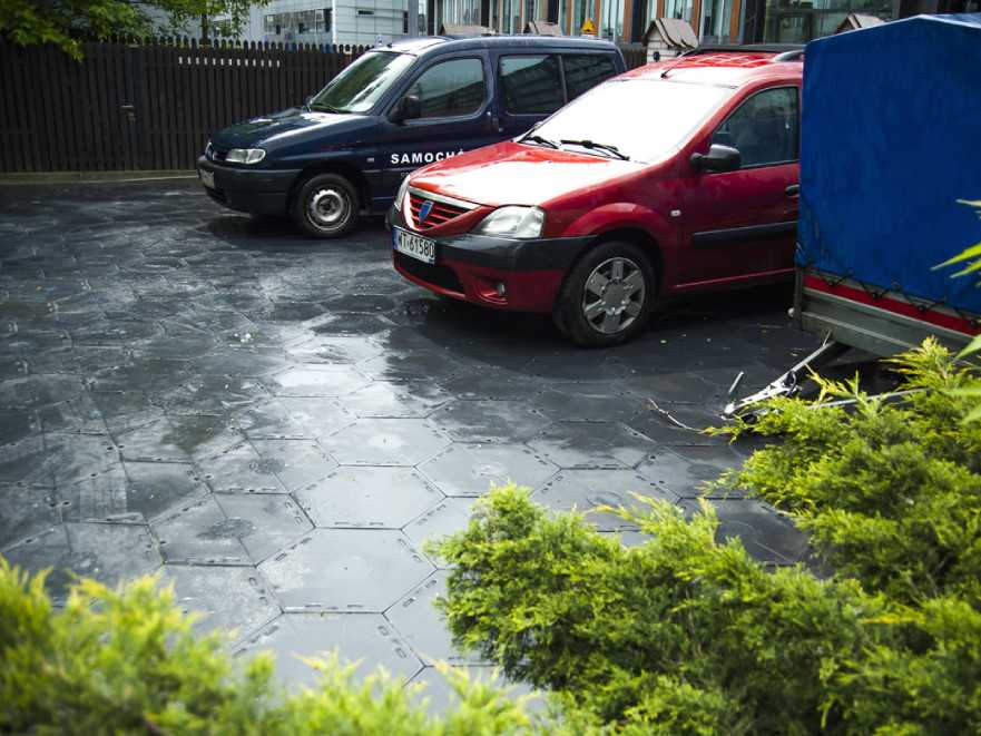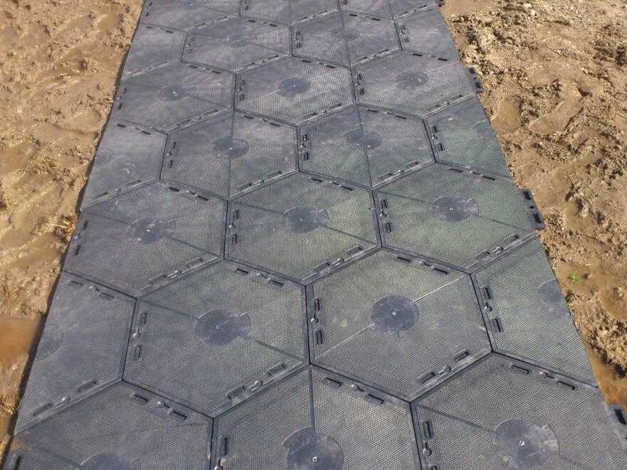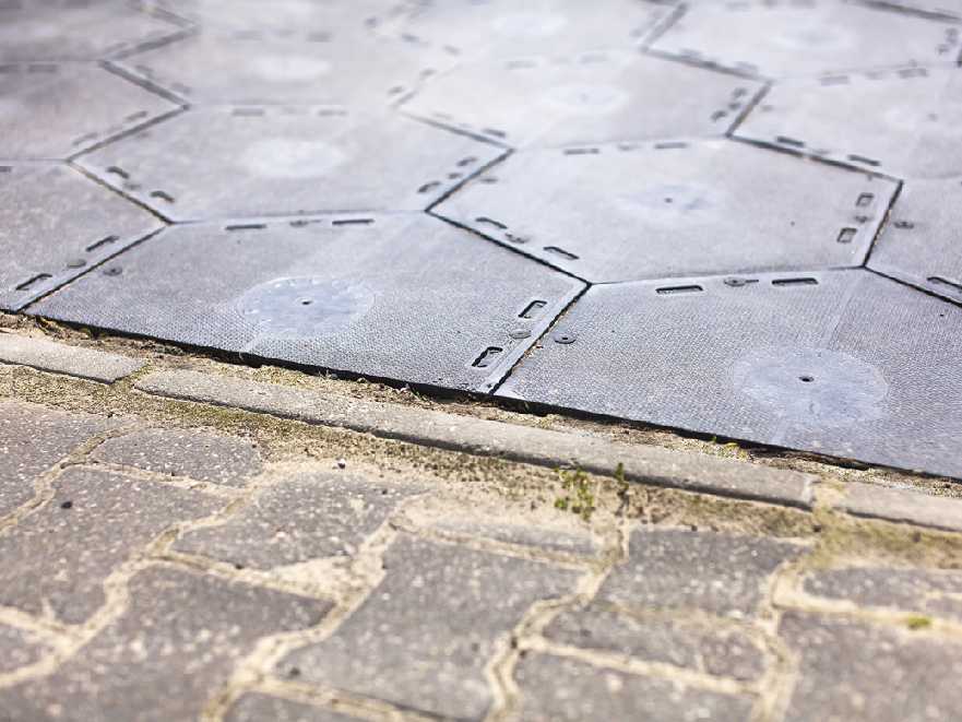 Płyty wykonane są z tworzywa sztucznego. Mają kształt sześciokąta. Łączone są ze sobą za pomocą specjalnie zaprojektowanego systemu zamków. Dzięki wyjątkowej strukturze, nawet w czasie deszczu przejdziemy po nich suchą stopą.